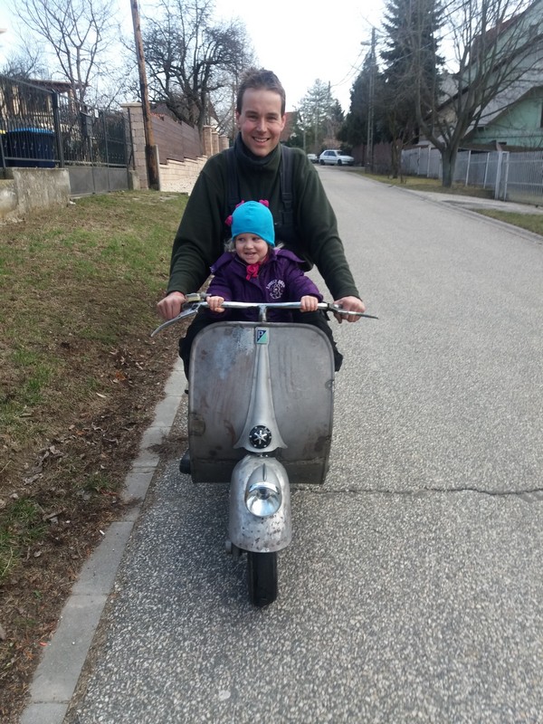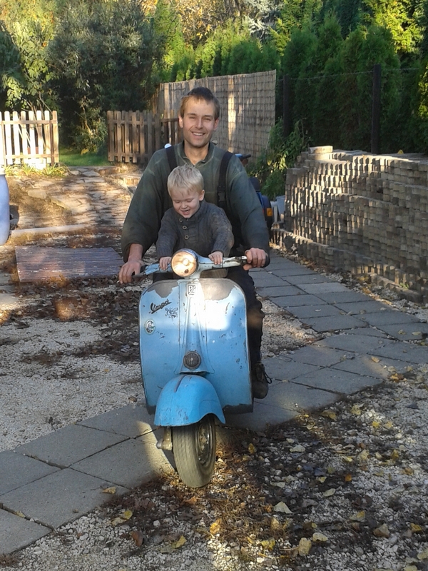 A járművekhez való vonzódásomat édesapámtól örököltem, ő a mai napig autóvillamossági műszerészként dolgozik. Mint sok tizenéves fiúnak, nekem is egy robogó volt az álmom. 14. születésnapon be is teljesült ez, hosszú idő alatt összespórolt „zsebpénzemből” megvásároltam egy ütött-kopott Yamaha Jog 3kj-t. Ezt váltotta néhány hasonló japán motor, amíg egy veterán börzén meg nem láttam az 1960-as évekből származó Vespa-t. Akkor kezdődött ez az Olasz márka iránti szerelem. Nem sokkal rá persze meg is vettem első Vespámat, azóta is őrzöm ezt a kincset.